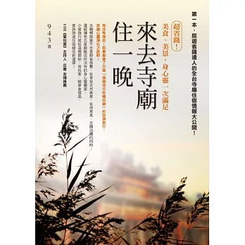 來去寺廟住一晚:超省錢!美食、美景,身心靈一次滿足購買網址: https://www.books.com.tw/exep/assp.php/87926/products/0010589617?utm_source=87926&utm_medium=ap-books&utm_content=recommend&utm_campaign=ap-201901