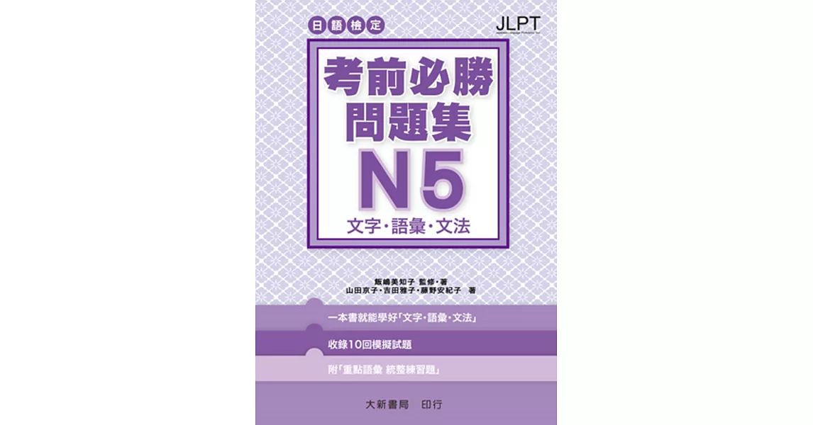 博客來-日語檢定 考前必勝問題集 N5 文字語彙文法訂購網址: https://www.books.com.tw/exep/assp.php/87926/products/0010825394?utm_source=87926&utm_medium=ap-books&utm_content=recommend&utm_campaign=ap-201906