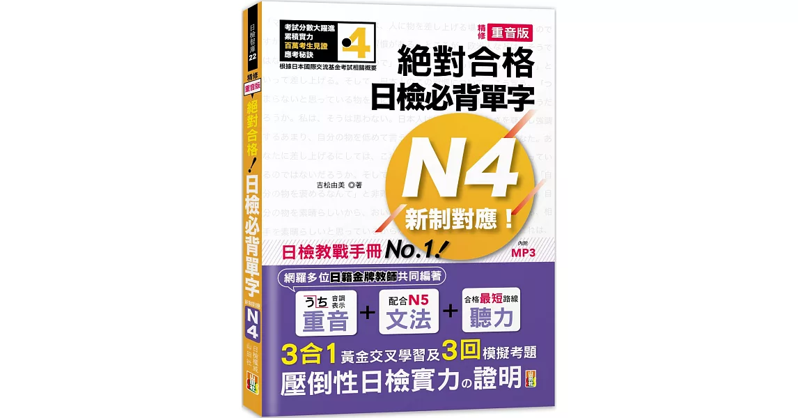 商品說明: 精修重音版 新制對應 絕對合格!日檢必背單字N4 (25K+MP3)